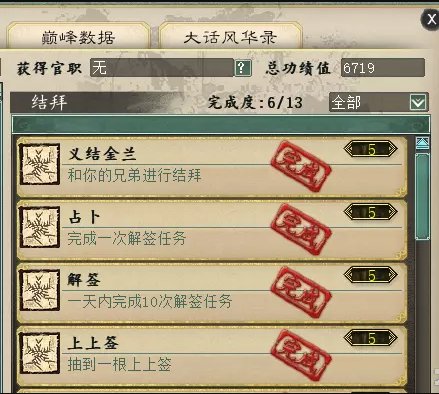 结拜的话,最好五人组队,这样可以快速完成解签任务。