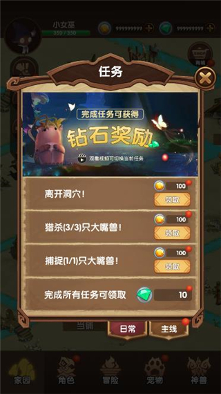 5、点击左上方的任务按钮即可完成任务领取海量福利