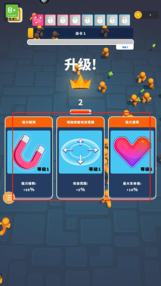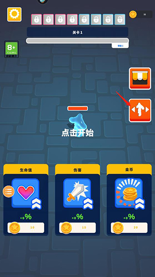 6、你可以通过操控果冻人不断杀死怪物进行升级获取能力,使用多种道具会让果冻人的实力增长更快。