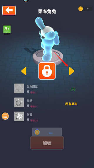 3、游戏为玩家带来了十位不同外形的果冻人,它们都有各自独特的技能,所以使用不同的果冻人游戏可以得到不同的乐趣!
