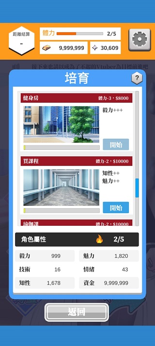 通过直播和剪辑获得资金和点数,训练可以提升自己的属性,让直播时更有利!