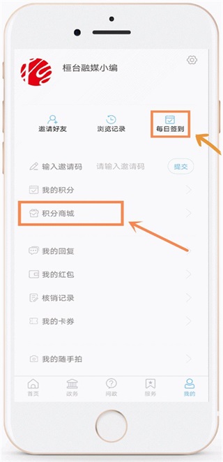攒积分步骤:下载安装i桓台APP→“我的”→注册登录→“每日签到”完成每日积分任务