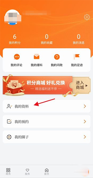 3、登录上海普陀APP账号成功后,点击我的资料进入输入相关的资料