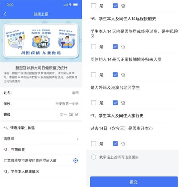 i淮安app学生健康填报教程