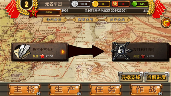 2、点击我们需要攻打的【战役】,这里以第一关攻打大窑头村为例。