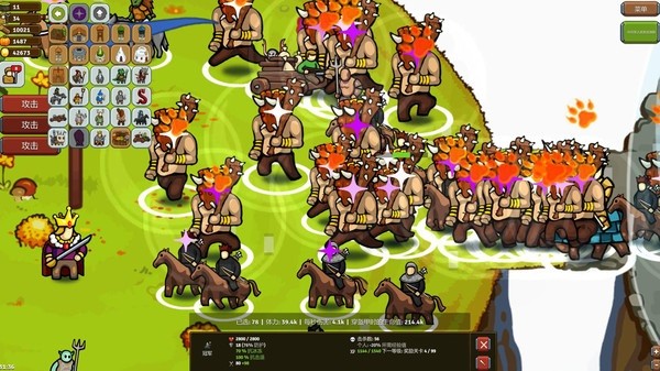 1、内容:游戏内玩家将扮演一位国王,通过不断的放置与养成自己的军队来展开战斗。