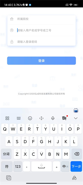 3、根据自身情况输入所属院校、学号以及密码即可登录使用;