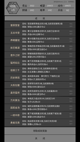 7、【成就】:该入口下会显示成就列表,每项成就后面还会显示为完成条件和完成奖励,下方还有一键领取功能。