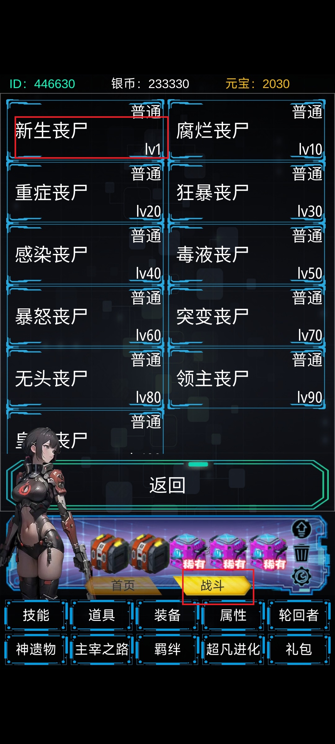 (加气血,加攻击,加速度,加防御,后面会讲到怎么点技能。)在空闲时间可以把十个广告看完。7、到了30级,就可以点“主宰之路”,这时我们应该选丧尸帝王,可以大量增加攻击伤害,方便我们快速推图。(提醒:丧尸帝王升到16级即可,后面继续存元宝存到90级)。