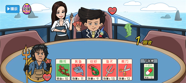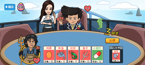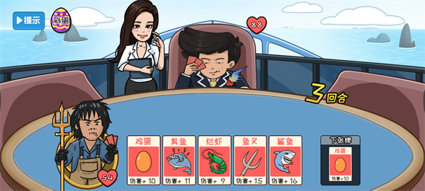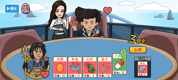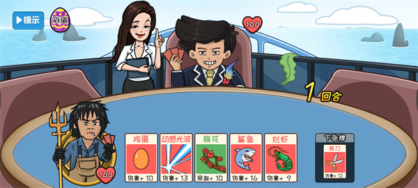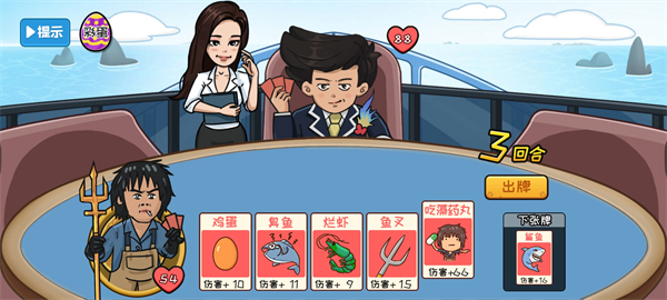 1、夺回秋雅关卡,我们需要将鲨鱼和鱼叉丢进海里我们就可以得到一张海王卡牌,就可以战胜对方了;