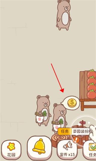 4、这时动物顾客会来购买蔬菜,顾客购物后,回去收银台结账,点金币就可以收钱了。