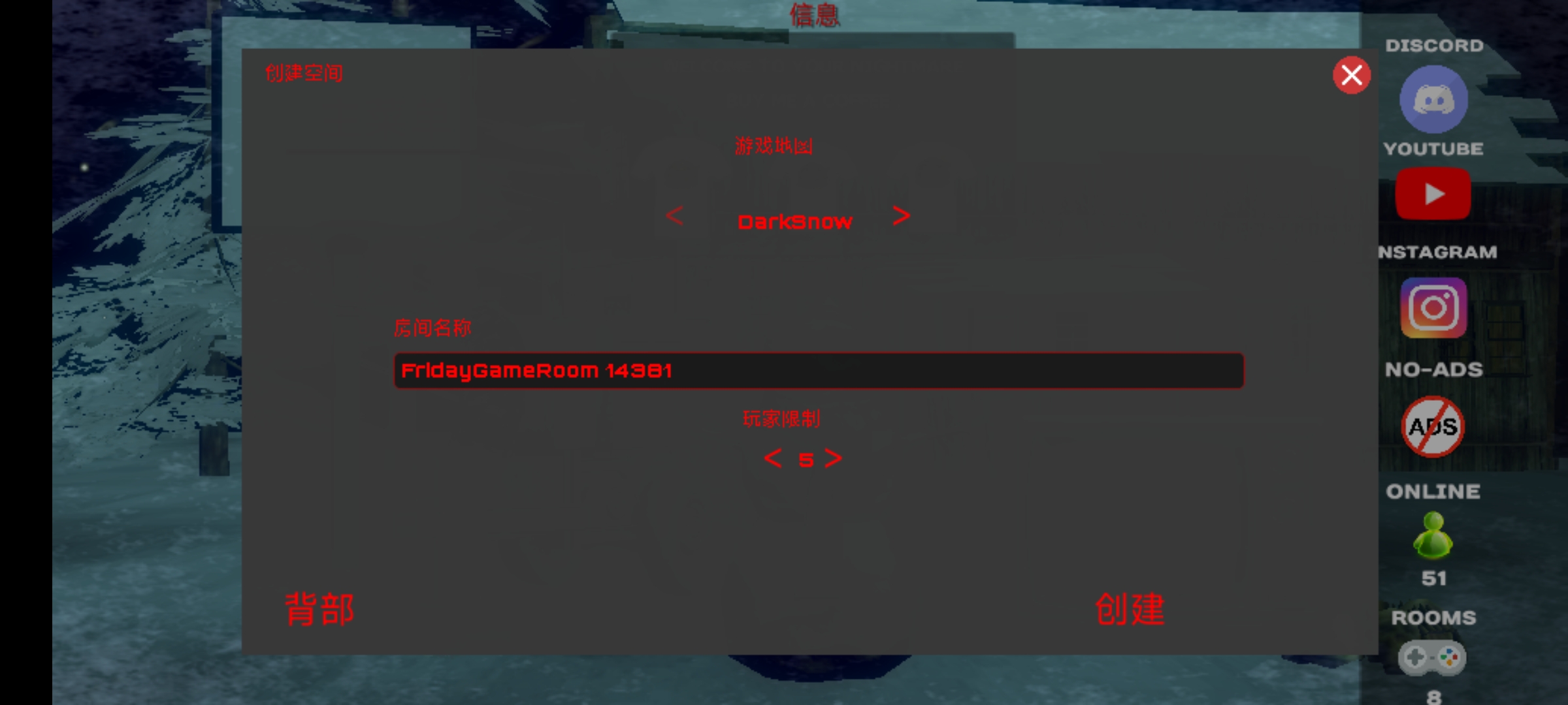 4、设置好恐怖周五地图、房间名称和玩家人数后,点击【创建/Create】即可成功创建房间,开始畅享多人联机的乐趣。