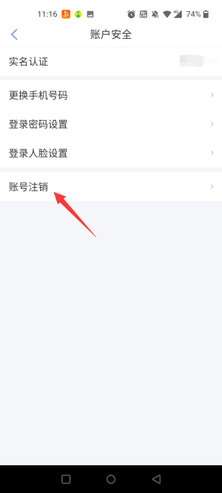 3、进去后会显示你的实名认证,最下方就有账号注销。