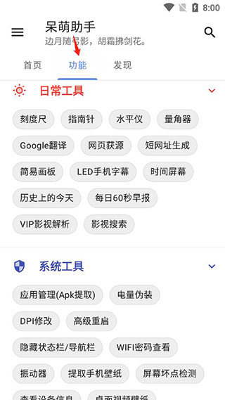 1、在功能中就可以发现呆萌助手app所有强大的功能