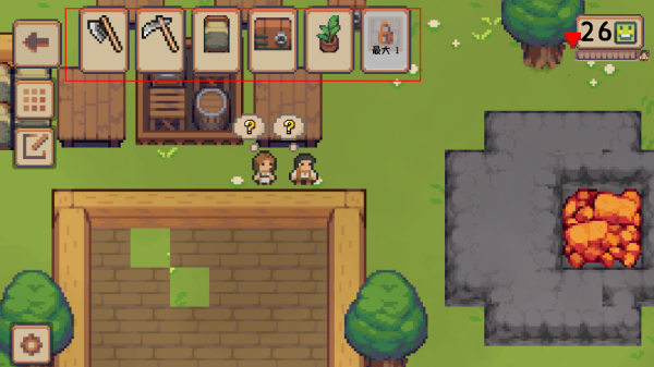 游戏提供了丰富的互动内容,比如与NPC角色交流完成任务,并通过制作陶器、编织等手工艺品展现创意。玩法简单易上手,玩家可以通过点击图标进入建设页面,采集资源或建造建筑,还能提升村民心情值来解锁更多功能。