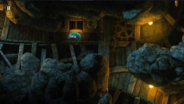 8、这里有很多新手玩家卡在这里,开关位于玩家的左边,但是如果用手指左边滑动的话里奥就会掉下来,正确的方法就是先滑动左手指让里奥沿着惯性来到机关处,然后向上滑动右手不松,里奥就会膨胀,机关也会慢慢打开了。