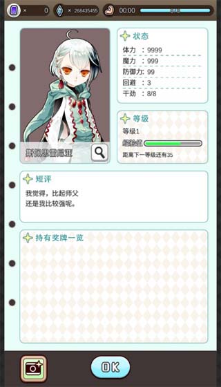 魔法密码1111最新中文版是由朴家工作室倾力打造的一款萌系二次元角色扮演类手游,游戏讲述的是仅剩的两个魔法使主角和他的失踪的师傅,在这里主角需要在寻找失踪师傅的道路上,不断的收集被时间遗网的魔法,值得一提的是在这的里魔法不只一个没有任何意识形态的工具,它是拥有自己性格和拟人形态的,非常的有趣,玩家要不断的去和各种可爱的拟人魔法提升好感度,也就是魔幻中的亲和度,好感度越高发挥的威力也将就越大。而且游戏中的角色都非常的精美,形象是典型的日式二次元风格,喜欢二次元的朋友可以来试试,而且在这里玩家可以自动调节攻击力度的大小,使得游戏玩法的更加丰富。所以喜欢的朋友千万不要错过。