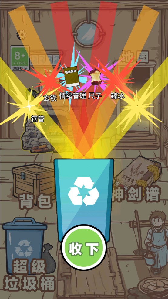 一剑开天门手游是一款以变废宝为核心的武侠风格小游戏,在游戏中,玩家将通过翻垃圾收集到的各种各样的材料,来铸造各式各样的武器,再通过武器来击破一个又一 个的城门,到达下一个区域。每个区域都有新的场景,新的材料,新的事件等着玩家,直至击破最后一道天门。而且,玩家可以通过打造神器展开冒险,在危机的世界里面打开天门,快速的逃离出去,收集各种各样的材料来增加角色的实力,击败每一个邪恶势力,最终完成重任。有感兴趣的玩家可以点击下载体验一下哦!