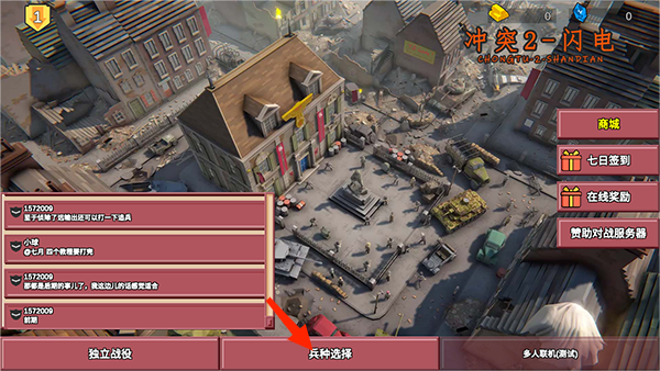 1、进入游戏后,玩家先要预制部队如图所示点击兵种选择;