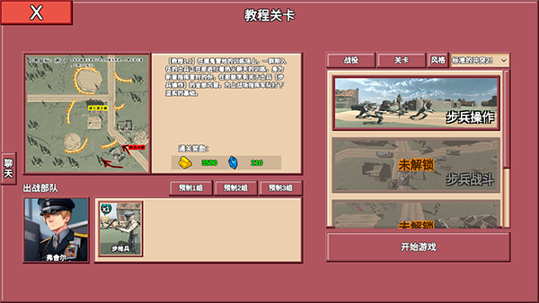2、选择指挥官,根据指挥点数合理整备部队,超多兵种等你来解锁,一共可以预制三组;