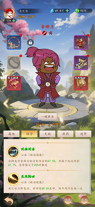 弟子的技能随机排列组合而生成,你很难得到完全一样的两个人物属性,由此衍生出的阵容搭配没有固定的公式,一切都是天机,一切都看造化。