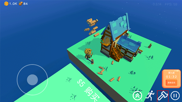 6、点击斧头,可以在在收集和攻击状态中切换