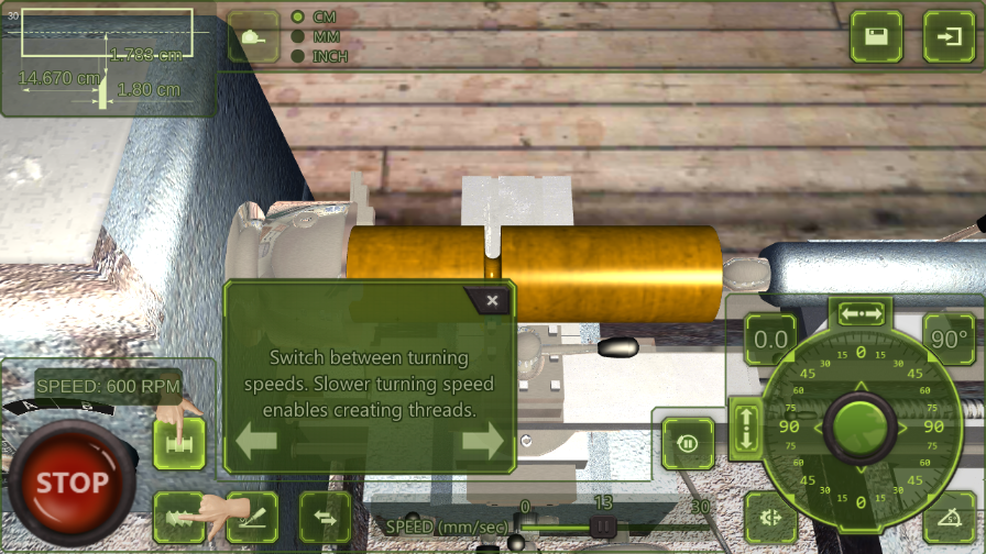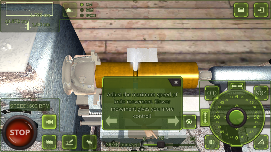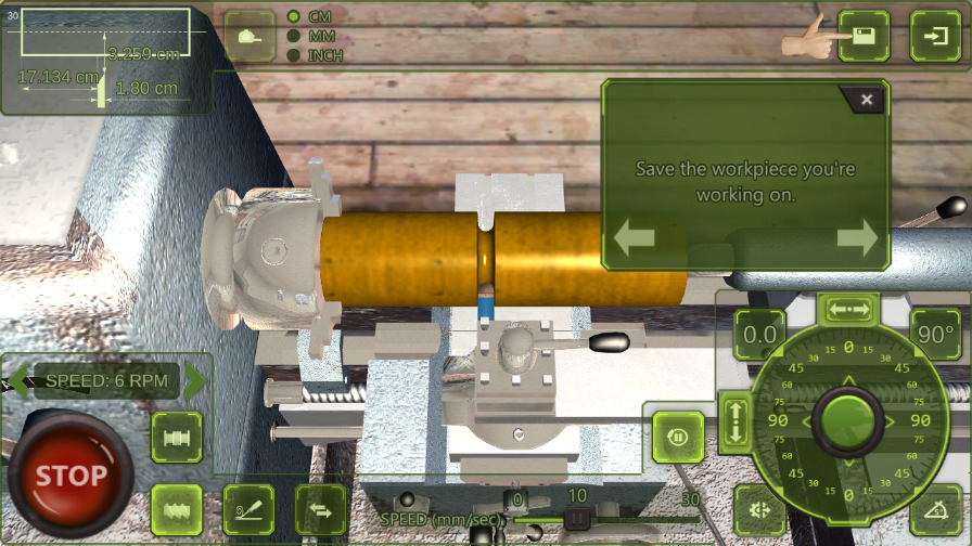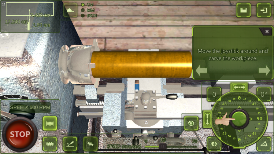 在通过两条不同的轴综合控制切刀前进的过程中,您可以看到机床的逼真物理运动。在材料旋转过程中,您会看到材料从长方体或圆柱体逐渐变成您想要的形状。使用比原来机床游戏精细30倍的工件!