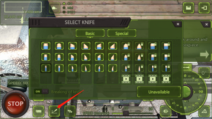 8、当玩家想在工作过程中调整速度或角度时,禁止刀具的移动是很有用的;