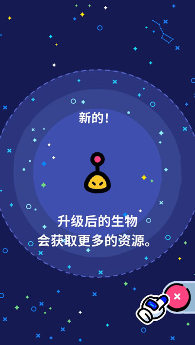 4、当生物达到一定等级之后你还可以升级你的飞船,点击底部绿色的电源标志即可升级