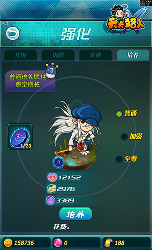 “培养”会压轴登场自然有它的道理。培养系统是增加卡牌属性最直接最迅速的方式了。所需的道具是“念石”,念石可以在各种活动、副本、日常、神秘商店里获取。培养系统分为三种,普通、加强、至尊。普通培养需要念石*1+5000戒尼能让角色的某个属性进行概率性小幅度增长。加强培养需要念石*1+10钻石/礼券能使角色某两个属性增长,小编建议玩家在对角色进行培养的时候尽量将道具、戒尼、钻石/礼券花在等级更高属性更强大的S卡上。这样可以避免浪费在换掉A或者等级更低的卡片的时候造成的道具和金钱的消耗。