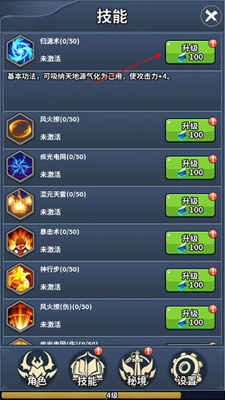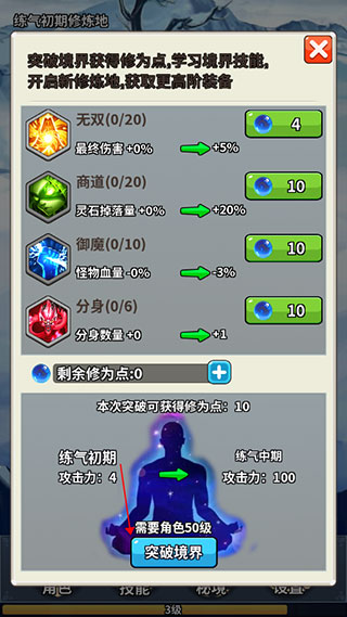 4、功法自由,数十种功法自由配合,特色本源心法、攻击功法、防御心诀随心配