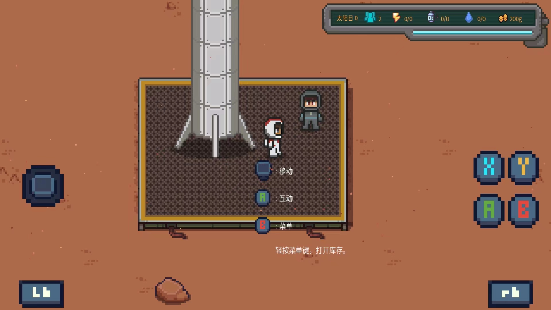 1、设置好中文好,就可以开始游戏了,我们可以通过左方的按钮控制角色移动,A代表互动,B代表菜单