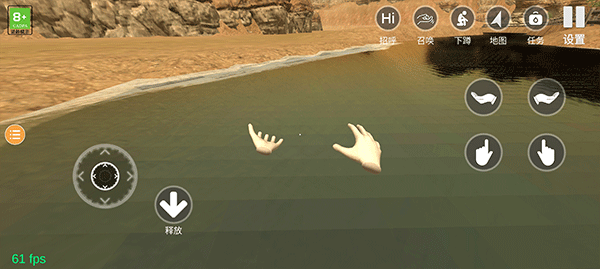 3、左右手指手势,可以操作左右手,拿起物品,比如拿起香皂,抓起马缰绳骑马,当物品出现下方图标提示时,就可以拿起物品或操作物品了;
