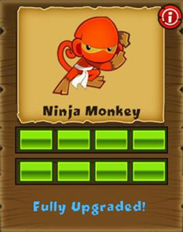 忍者猴,超赞,刚开始可以挺过好多关!攻速较快,初期即可攻击迷彩气球。(顺带一提:忍者猴的原型是《特种部队》里的黑白忍者“蛇眼”和“白幽灵”)