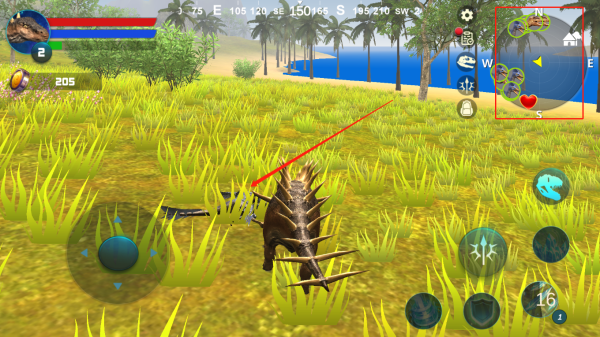 5、图示位置是地图显示,可显示其他恐龙位置,可进行捕猎