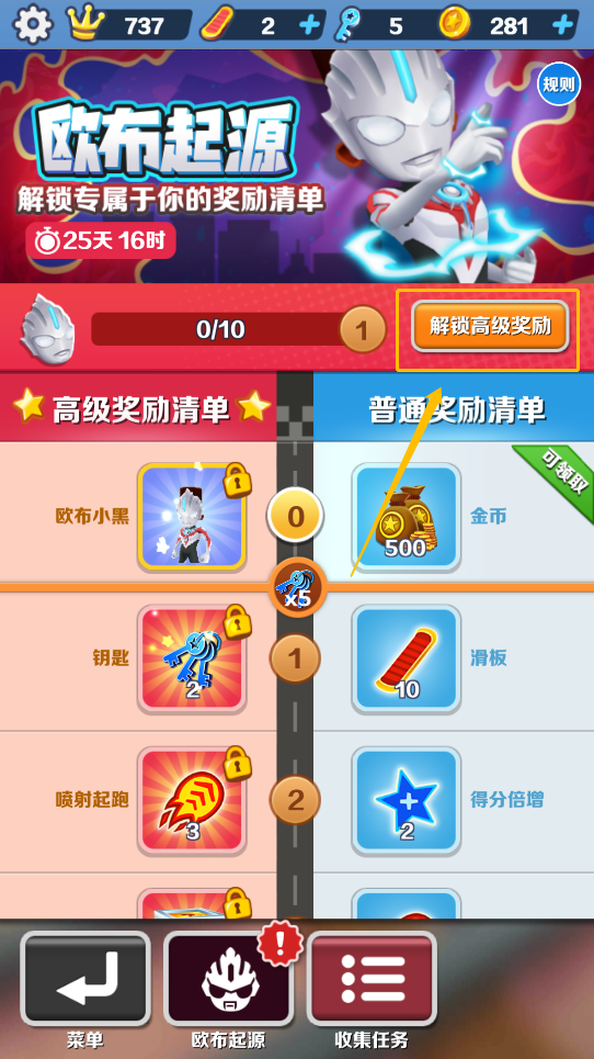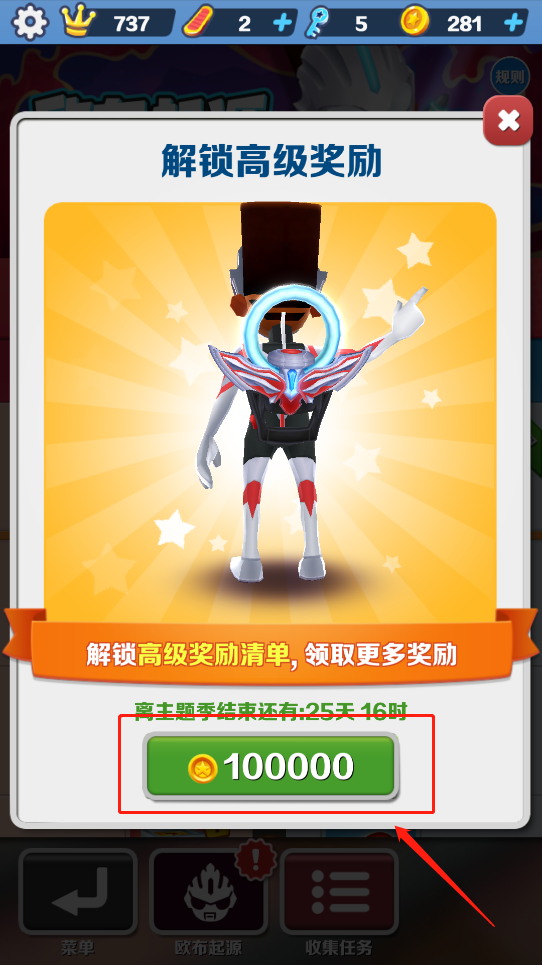 地铁跑酷奥特曼第二次联动怎么获得欧布之光