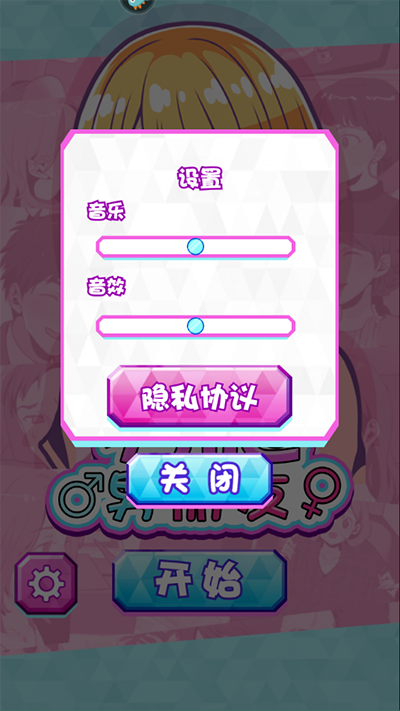 1、进入劈腿男朋友手机版游戏前,先设置一下音效之类的功能,保证游戏的音乐效果;
