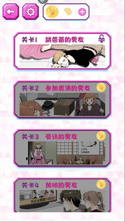 准备好挑战你的思维和情感吧,展开这个充满未知和悬疑的恋爱之旅!劈腿男朋友手机版将带给你一段令人难忘的游戏体验,让你沉浸在一个充满浪漫与冲突的恋爱世界中;快来下载并开始你的冒险吧!