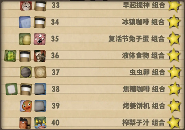 五、33—40组合:僵尸花园组合:Instant Seed Packet(1) Toy Zombie(4);等蛋组合:Egg Pack(3) PhoenixEgg(4);令人费解的冒险组合:Tetronimos(4) Gentleman Adventurer Doll (4);粘粘世界组合:Goo Ball Pack(4) Casual Game(4);飞行模式组合:Cell Phone(4) Handheld Fireplace(4) Gaming Tablet(4);水下组合:Blowfish(3) Miss Hexopus(4);嵌套游戏组合:Handheld Fireplace(4) Beta Version(4);像素像素化组合:Pixel Pack(4) Beta Version(4)