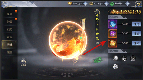 灵珠品阶最高为10阶5星。灵珠进阶丹可通过每日挑战、白银宝箱、商城途径获得。灵珠升星提升至不同阶段后可激活不同的灵珠被动技能。