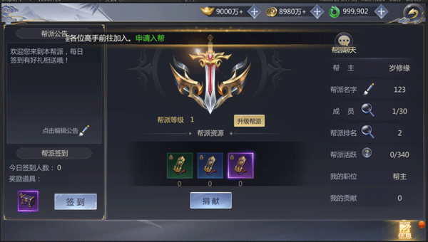 1、加入帮派