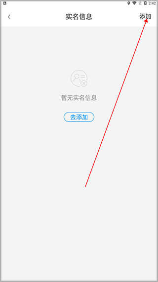 4、进入实名信息界面,点击【添加】。