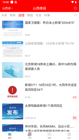 1、下载安装好山西晚报app,进入首页,点击我的。