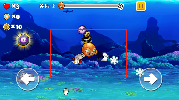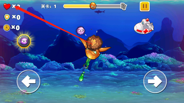 1、进入疯狂章鱼游戏之后,我们可点击左右边按钮调整触手方向,触手对着敌人会自动发起攻击。