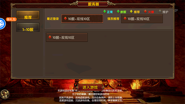 1、下载好游戏之后,打开进入游戏,选择一个服务器。