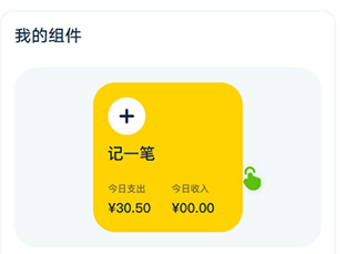 记账组件、数据组件、快捷标签组件、日历组件、打卡组件