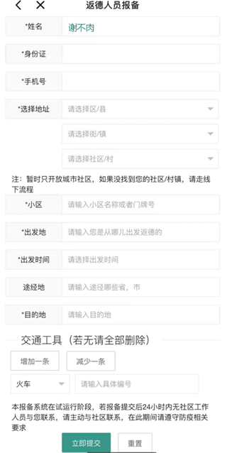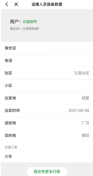 填报完成后,该报备数据会在社区管理员管理名单中出现,社区管理员将会与您联系,请您遵守相关防疫规定。