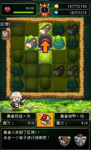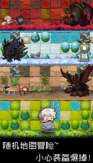 点击方块进行冒险,随机事件遭遇;单按键战斗,装备千奇百怪!