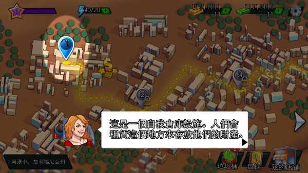 在这里是一个仓库,人们会租赁这个地方来存放他们宝贵的财产,如果放置在这里商品的主人没有负担房租,玩家便可将此物品进行拍卖,期间所收获的金币都归玩家拥有。