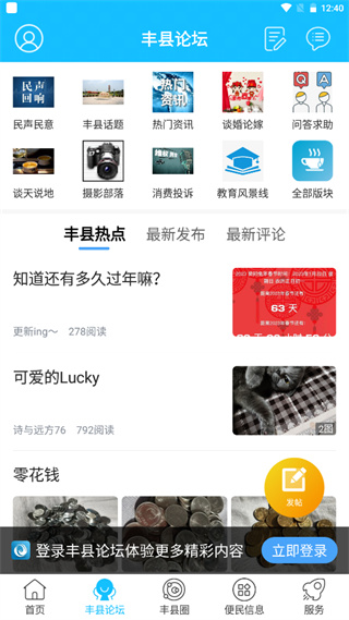 这个丰县论坛app真的很方便,作为一个本地人,感觉它完全为咱们量身打造的!每天打开软件就能看到各种新鲜资讯,还有那么多同城用户一起互动聊天,真的有种归属感。特别是它的夜间模式和草稿箱功能,设计得很贴心,晚上刷手机也不怕伤眼睛,灵感来了还能随时记录,再也不用担心内容丢失了。